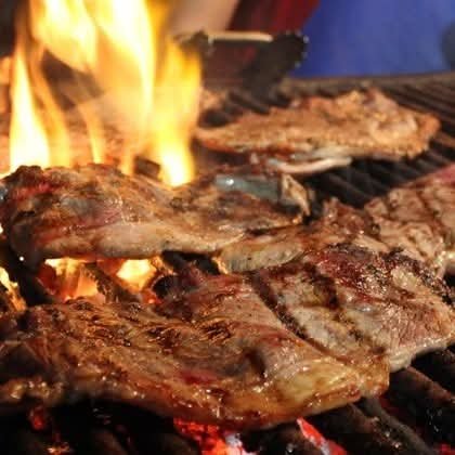 Meats prepared and grilled on-site